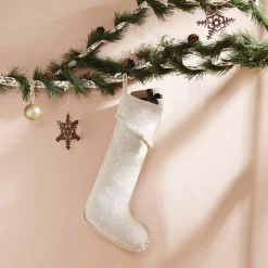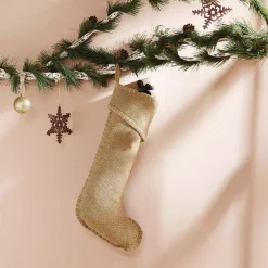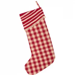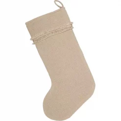 VHC Brands 20 In. Cotton Natural Festive Burlap Farmhouse Christmas Decor Ruffled Stocking