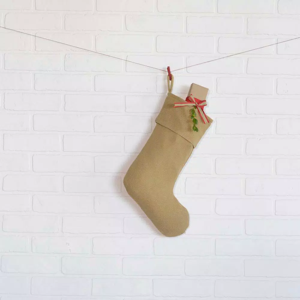 The Festive Natural Burlap Stocking is unadorned and waiting your personal touch. The cuff and body are lined in natural shade taffeta for added durability. This item was made with care to decorate your home for many years.
