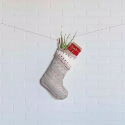 For the kid at heart, the Let It Snow Stocking captures the feeling of fun in the snow. The center features a classic appliqud snowman in creme felt with red ribbon, jute twine, and embroidery over apple red and almond micro-houndstooth. This item was made with care to decorate your home for many years.
